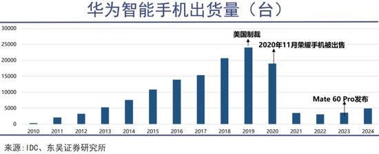 2020年,华为遭受美国多轮制裁,直接封死了华为从第三国购买带有美国技术产品的渠道,尤其是无法获得台积电代工,强行阻断了华为5G芯片的研发进程。受此影响,当年华为手机的出货量遭遇断崖式下跌,从2019年巅峰期的2.4亿部骤降至2022年的不到3000万部。
