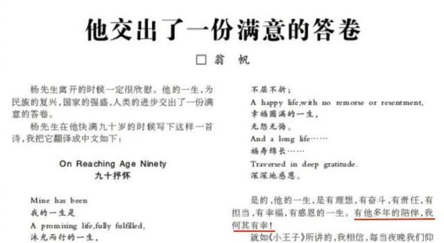 可最戳人的,是那段没播出的录像:百岁生日那天,他穿着她挑的灰毛衣,对着镜头,用英文念叶芝的诗,念到一半,突然笑了,说:“我老婆,老说我念得像在催眠。